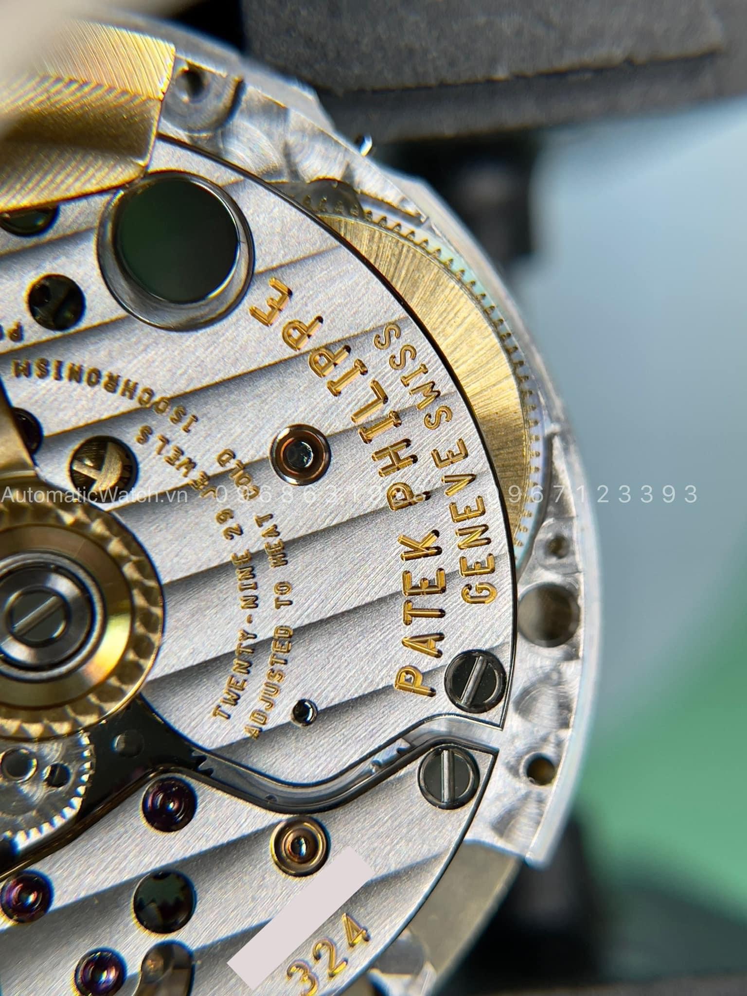 5711 Máy Patek Philippe 324 zin chính hãng Logo PP to dây tóc silicon
