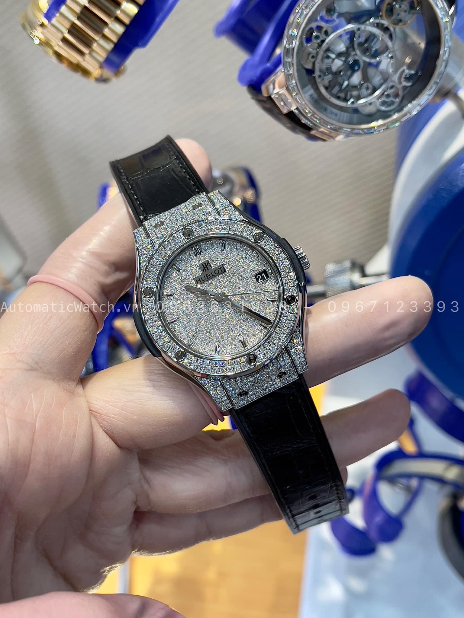 Độ Full Kim Cương Vỏ Đồng Hồ Hublot Classic Fusion Titanium 38mm Watch