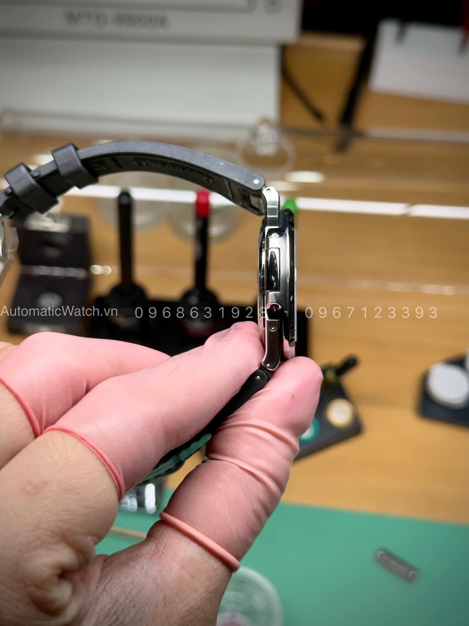 - Mặt số vành và dây đồng hồ chất liệu cao su dây da cao cấp + dây thép